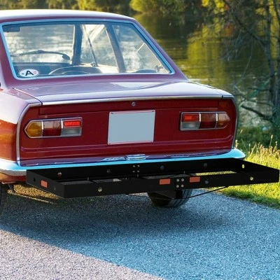 - FEATURES: Cargo racks for trailer hitch’s heavy duty steel mesh bottom construction keeps the luggage more secure. Includes 6 reflectors on the cargo carrier to add visibility to the carrier and your car for a safe ride.