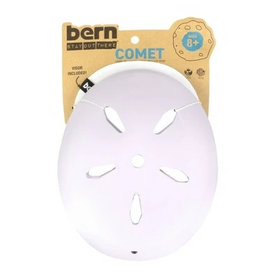 Exclusive to Target, Bernโs Comet Kids helmet is out of this world! A sleek ABS shell and a durable EPS liner combined with top and rear vents protect your little riderโs head while keeping them looking and feeling cool. Our Crank Fit dial and lay flat adjustable straps help create find the perfect fit while compression molded top and front pads add to the overall comfort so your child can focus on their ride. Bernโs patented flip visor can be worn up for style, down for sunny days, or removed entirely and is machine washable for added convenience. With Bernโs Comet you can Stay Out There safely and in style! Protection is our Priority and proper fit is key to protection. Use our fit guide to determine your size. This helmet is recommended for ages 8 + and fits heads sized 54.5-57cm. This helmet meets CPSC and ASTM certifications for cycling and skate activities.