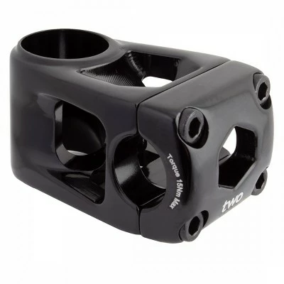 STEM BOX TWO CENTER CLAMP 53×22.2×1-1/8 +/-5d BK Box Two Center Clamp stems are cold forged from the highest quality 6061-T6 aluminum available. Featuring an open skeletal design and a dual mid-bolt wedge mounting system, they are lightweight yet maintain a very high level of strength. By removing the rear pinch bolts and moving the mounting bolts to the middle of the stem, Box reduced the weight and size and eliminated a serious hazard to the rider`s knees.
