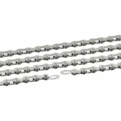 Connex 08 chains are nickel-plated for durability. Their chamfered outer plates offer precise, lightning-fast shifting, ideal for touring, road, MTB, and city riding Compatible with Shimano, SRAM and Campagnolo 9 speed drive trains. 6.6mm pin width. Reusable Connex master link included. Alloy steel inner and outer links, both electroless nickel-plated.