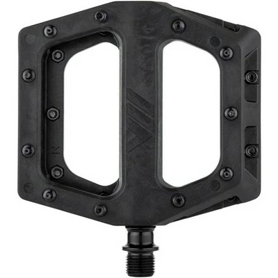 The V11 pedal is for those that favor durability, compliance and affordability of composite pedals. Molded with the same proven shape as the multi award-winning Vault pedal, providing a huge platform with DMRโs unique concave shape that allows your foot to sit deep into the center for supreme grip. Durable glass reinforced nylon body features eleven replaceable steel pins each side for rock solid grip. Pins are secured with captive locknuts for ultimate durability. Fully rebuildable with the same proven internals as DMR Vault pedals. Large platform area 105mm x 105mm, and 19mm thick. Low profile body with concave foot bed.