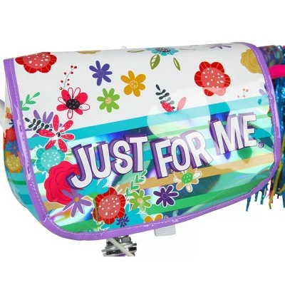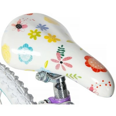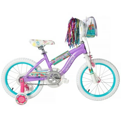 The adorable 16β Everest Just For Me bike is the perfect set of wheels for your little one to learn how to ride! This charming 16β bike features a deluxe soft purple paint finish, custom graphics with sweet white flowers and pink and blue accents. This super cute ride includes a sturdy steel frame, comfortable padded seat, colorful handlebar streamers, and an adorable handlebar bag, perfect for carrying toys and trinkets along on any adventure. With a rear coaster brake and front hand brake, stopping is super easy for any young rider. And, the training wheels are adjustable and removable which allows your little one to learn at their own pace with as much, or as little support as they need. When they are ready, simply take the training wheels off, put them to one side, and let your rider go. They are sure to have hours of fun learning to ride on the Everest Just For Me 16β bike!