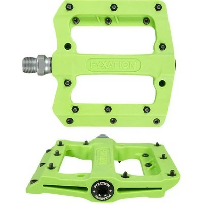 The Fyxation Mesa MP (metal replaceable pins) is a wide bodied nylon pedal that’s great for any environment and built to take abuse. Smooth running sealed bearings, DU bushings, chromoly spindle and an impact grade nylon body, make these the ideal pedal for dirt, snow, sand and street. High impact nylon body built to take abuse. Smooth running sealed bearing and DU bushing with chromoly spindle. Replaceable steel pins for added grip (extra replacement pins included with each set). Weighs in at 351 grams per pair with pedal height of 14mm. Extra wide 105mm platform great for dirt, snow, sand or street. Item Specifications: , Pedal TypePlatform, Pedal Spindle9/16″, ColorGreen, Spindle MaterialChromoly, keyword searchGM855XX, Weight351 g, Pedal Body MaterialComposite/Plastic,