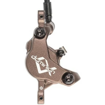 The Hayes Dominion A2 is optimized for cross country and trail riding, with a compact 2-piston caliper and a short finger lever (SFL). Low-effort lever input, coupled with high-fidelity power output for optimum braking feel and control. Dominion A2 features the proprietary QuickBite² system for fast and consistent burnish. Using a two-stroke dual port bleed system and Kevlar hose, the hydraulic system is engineered for ultimate performance across all temperatures and easy maintenance. The Crosshair Caliper Alignment System dramatically simplifies caliper installment and alignment. D-Series rotors, caliper adaptors and bleed kit sold separately.