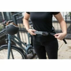 Hiplok Spin Combination wearable lock is designed to be comfortably worn on the body by transferring the weight directly to the hips, allowing the rider to adjust the fit it to their waist without locking it to them.