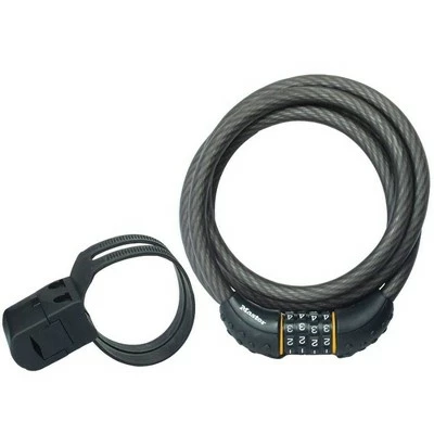 The Master Lock 8122D Set Your Own Combination Cable Lock is 6 ft. (1.8 m) long and features a 1/2 in. (10 mm) diameter braided steel cable for maximum strength and flexibility. The protective vinyl coating protects against scratches. The 4 dial combination security offers keyless convenience. The Lifetime Guarantee provides peace of mind from a brand you know and can trust.