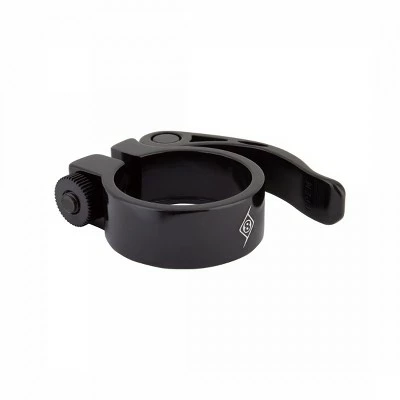 SEATPOST CLAMP OR8 CLAMPDOWN QR 34.9 BK AL6061-T6 alloy quick-release seatpost clamp. Stainless steel bushing ensures smooth lever action. Adjustment knob allows for on-the-fly fine-tuning. Rounded edges and floating bolt/ovalized hole design protects carbon frames and seatposts. ร28.6mm for ร25.4mm seatpost and steel frame. ร29.8mm for ร27.2mm seatpost and chromoly frame. ร31.8mm for ร27.2mm seatpost and aluminum frame. ร34.9mm for ร30.9mm seatpost and aluminum frame, or ร31.6mm seatpost and carbon frame. 16mm height.