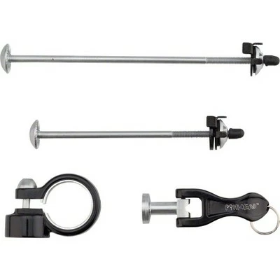 - 3-pack includes 100mm front and 135mm rear locking skewers, plus seatpost lock