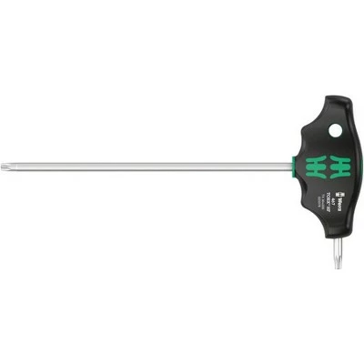 The ideal handle shape to allow high torque transmission in difficult tightening and loosening situations. The ergonomic shape of the handle fills the palm of the hand well, the fingers lie safely in the soft rounded handle recesses. The whole hand makes contact with the handle and friction losses between the hand and the handle are avoided. With holding function (HF) to securely hold the TORX screw on the tool. Special surface treatment of the blades for high corrosion protection and an optimum fit in the screw head. T-handle screwdriver for the transmission of particularly high tightening and loosening moments. Ergonomic 2-component handle with finger handle recesses and pleasant surface feel for very high power transmission and fatigue-free working. Take it easy tool finder: colour coding according to profile and size. With additional short arm for the transmission of extremely high torques due to the leverage of the long arm. With holding function (HF) on the long arm to securely hold the screw on the tool.