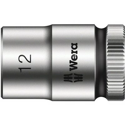 Manual and power tool socket insert (ISO 2725-Part 3) by Wera allows applications both in manual as well as power tools. “Take it easy” Tool Finder with color coding according to size – for simple and rapid accessing of the required tool. Featuring a good grip to allow easy pick-up even with oily hands. Ball stop groove, for hex head bolts and nuts; chrome vanadium steel, matt chrome-plated. 3/8 inch Zyklop socket. For manual and power tool operations (non-impact) . Knurling at lower end to enable easy gripping when used in manual applications. Equipped with ball stop groove. With Take it easy tool finder: color coding by size.