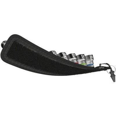 3/8″ drive Zyklop bit sockets. 10-piece socket set on a robust textile belt, 1/4. Sockets with holding function for screws/bolts/nuts. Smooth Twist to Unlock mechanism for a secure fit and simple removal of the sockets. With Take it easy tool finder: colour coding by size. Suitable for attachment to a wall, shelf, tool trolley and to the Wera 2go System.