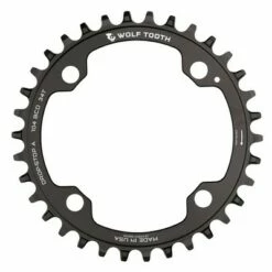 104 BCD is the most common bolt pattern on double and triple cranksets and happens to be the first product ever made by Wolf Tooth Components. The Drop-Stop tooth design is the best performing and longest lasting wide/narrow chainrings on the market. Fits any 104 BCD crankset. Drop-Stop technology. On Wolf Tooth’s patented wide/narrow chainring, the wide side of the tooth has maximum contact on the drive side which spreads the load and improves chainring life. The narrow side allows clearance for mud and debris which reduces friction. Alternating wide/narrow tooth pattern prevents chain derailment.Compatibility:Fits any 104 BCD crankset. Chainring Bolts: All tooth sizes require 1x bolts that are 6mm long with exception to 30T rings which are threaded and require bolts that are 7-10mm long. 104 x 30T – use 10mm bolts. 104 x 32T, 34T, 36T, 38T use 6mm bolts, unless using a Bash ring. Chainring bolt requirements for bashring:104 x 30t – 10mm bolts are required for use with the bashring. Other 104 BCD sizes – you will need 8mm bolts (stock size that comes on 3x cranksets holding the middle and big rings on). Wolf Tooth does not make these. 32t 104 BCD chainrings work on many older 2x Shimano crankset (XT, SLX, or Deore). All sizes of 104 BCD chainrings are compatible with QUARQ power meters. The Wolf Tooth 30T is the only 104 BCD chainring made in the market, and it is compatible with Quarq. Drivetrains: 1×9, 1×10, 1×11 and 1×12 drivetrains If using a 9-speed drivetrain, use a 10-speed chain. It fits tighter for better chain retention. Recommendations:If you plan to ride in very muddy conditions, we recommend a chainguide or chainkeeper in addition to a clutch-type rear derailleur. Without these precautions, you may experience chaindrops and/or chainsuck.Related Products: 64 BCD chainring (if you need something smaller than a 30T 104 BCD Stainless Steel Chainrings)Chainring bolts104 BCD bashringTech Specs:Weight: 38T 66g Material: 7075-T6 aluminumMade in the USA