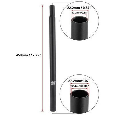 - Bicycle Seat Post Size: 450×27.2mm / 17.72″x1.07″(L*D), To fit frame seat post hole: 27.2mm / 1.07″, Length: 450mm / 17.72″, Tube thickness: 2.5mm / 0.1″