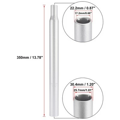 - Bicycle Seat Post Size: 350×30.4mm / 13.78″x1.20″(L*D), To fit frame seat post hole: 30.4mm / 1.2″, Length: 350mm / 13.78″, Tube thickness: 2.5mm / 0.1″
